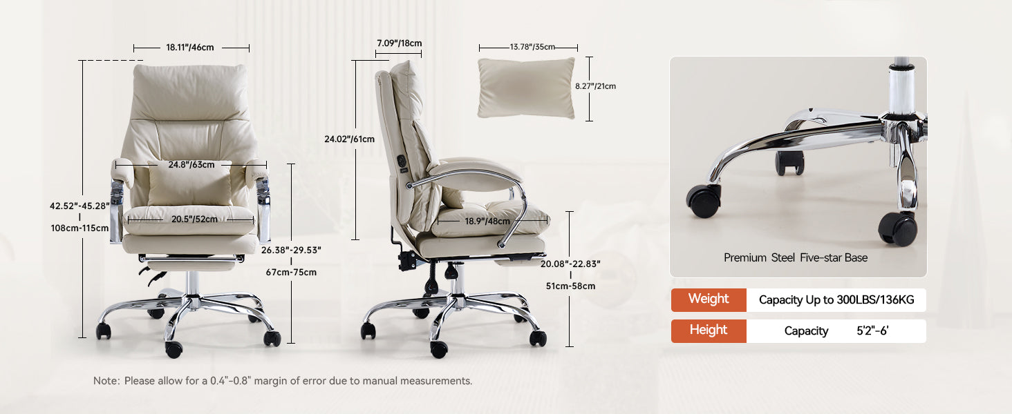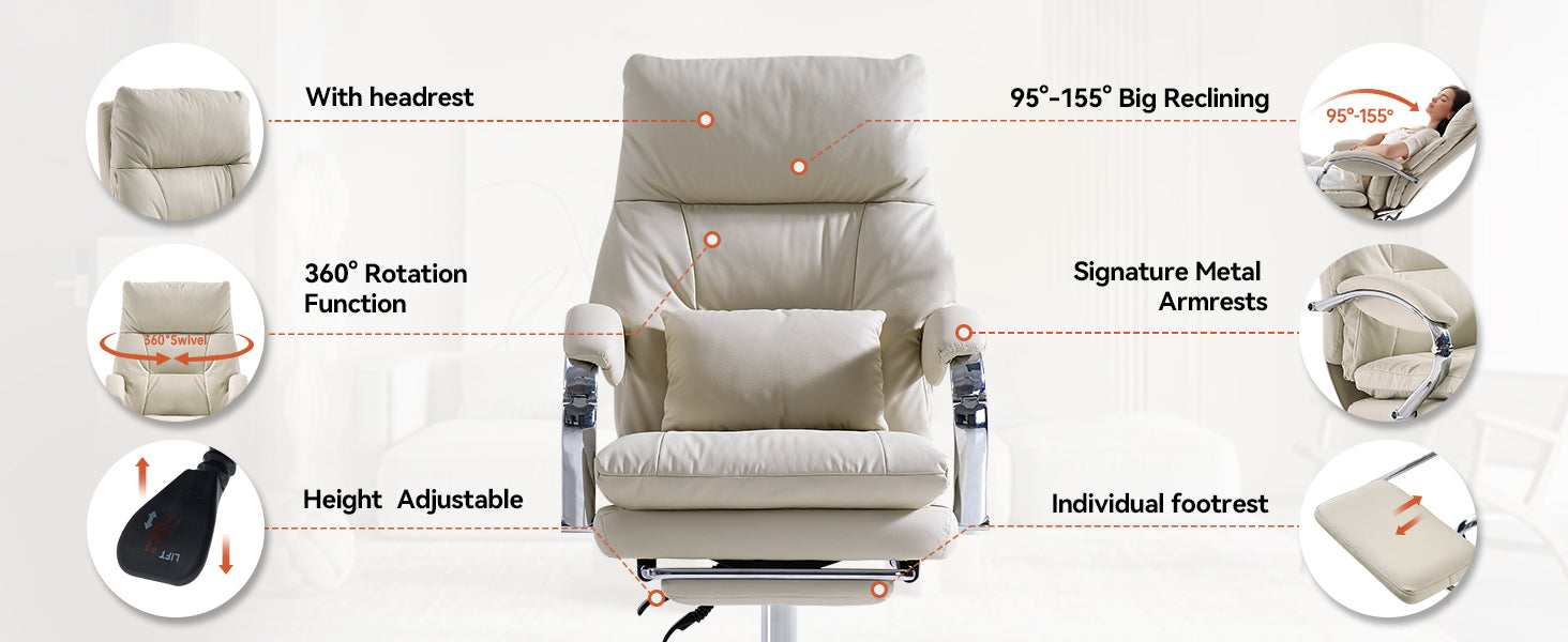 EMIAH C570 Comfortable Office Chair with Footrest - EMIAH Store Beige / Standard