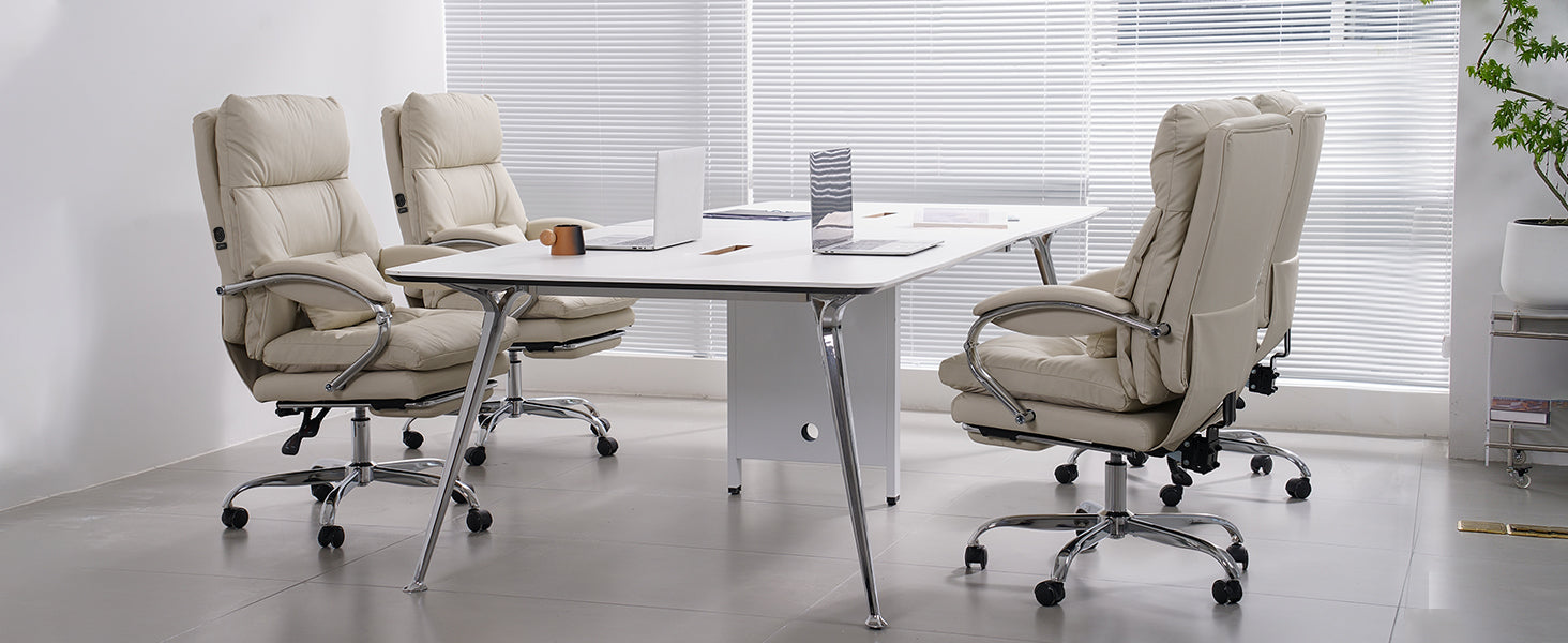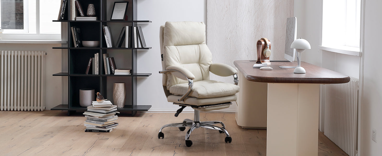 EMIAH C570 Comfortable Office Chair with Footrest - EMIAH Store Beige / Heated Massage