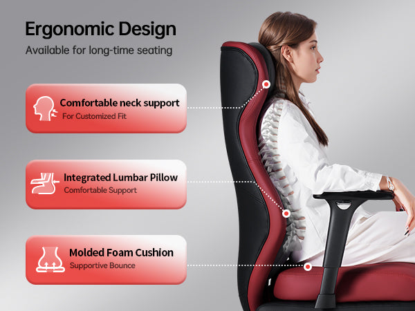 Relieve back pain with the lumbar support's built-in massage feature, featuring twohigh-frequency vibration motors to keep you relaxed and comfortable during longgaming or work sessions.